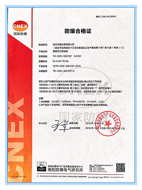 | 智能压力变送器-防爆证书 |